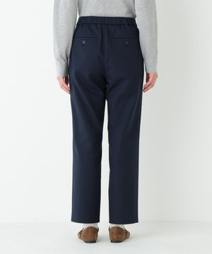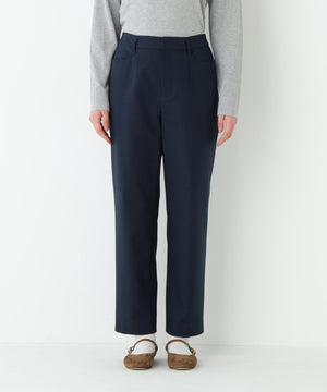 生地のストレッチを活かしたきれい目の細みストレートパンツです。膝下をストレートにしたシンプルながらこだわりの効いた1枚。ウエストはあえて、フロントボタンがないすっきりとしたデザインに仕上げました。