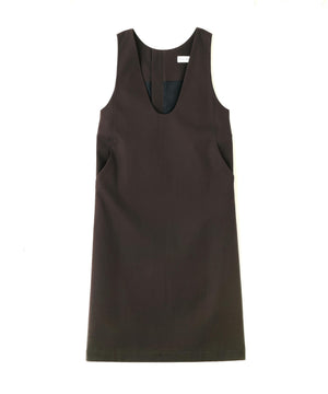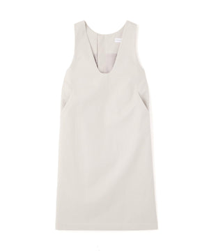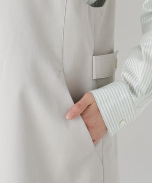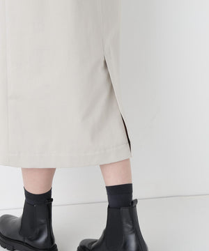 シンプルなストレートシルエットのジャンスカで、キレイ目にもカジュアルにも着ていただけるアイテムです。程よいU字のフロントラインが優しい印象に。脇タブでシルエットも調整いただけます。