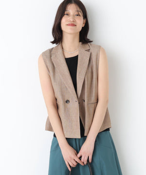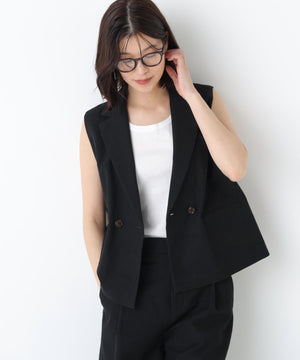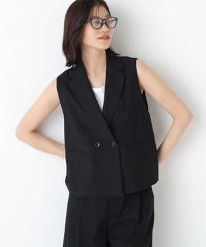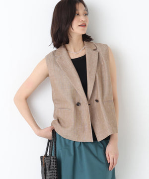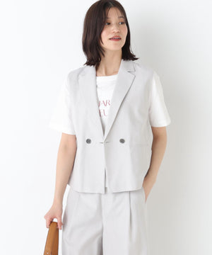 《定番素材 / 洗える》ドライタッチリネン混ショートジレ