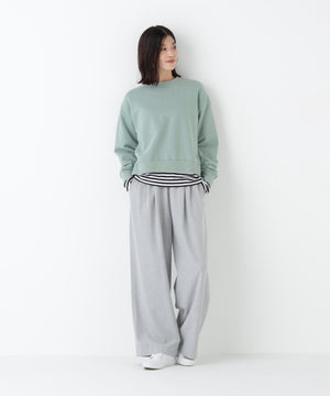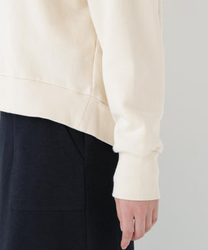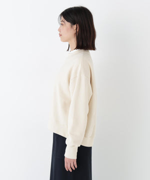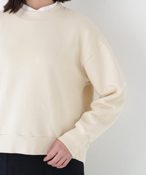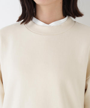 ブラウスやタートルネックとのレイヤードもバランスよくできるので、冬のリラックススタイルにぴったりなスウェットです。