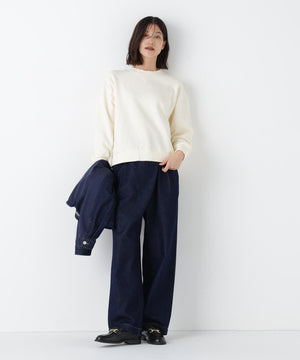 カラーが目を惹くスウェットなので重くなりがちな冬のスタイリングに鮮度をプラスしてくれます。デニム合わせのベーシックなカジュアルスタイルもおすすめです。