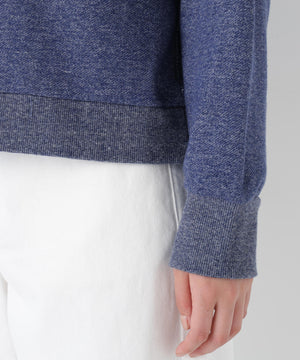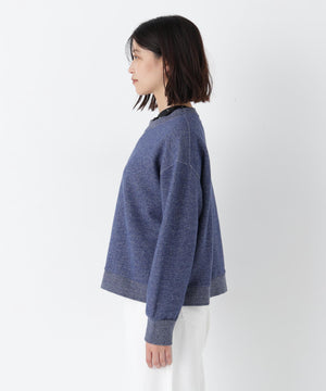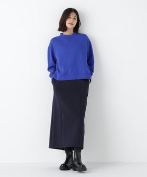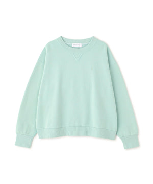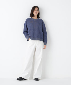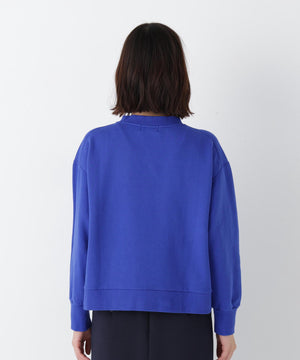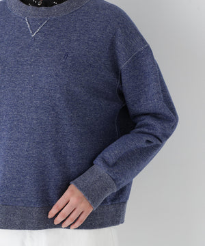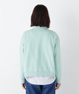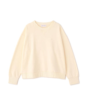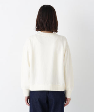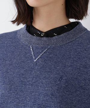 裏毛スウェットに「h」刺繍を同色で施した春カラースウェットです。衿下のガゼットデザインでカジュアル感があり見頃は横地の目使いにしています。