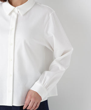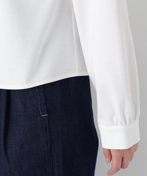 カットソー素材で作ったブランドらしいベーシックなシャツ。ストレッチ性を活かしコンパクトなサイズ感と抜群な着心地にこだわりました。袖口は、カットソーらしいシンプルで洗練されたデザイン。