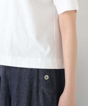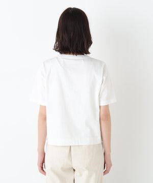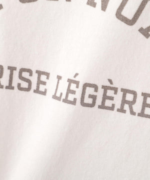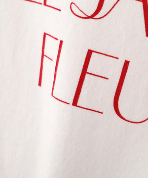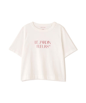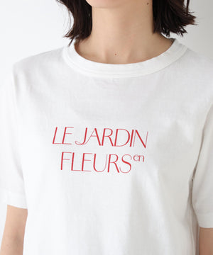 短め丈のシンプルなロゴTシャツをTSUNAGUシリーズの素材で作りました。「le jardin en fleurs」花咲く庭「sur un nuage/brise légère」幸せな時間/そよ風、と「Bonjour」をボーダー柄に入れた3デザインです。