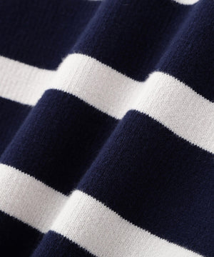 暖かいタッチのコットンを使用しています。ジャカードで編立ているので適度な肉感もありジャストで着ていただける素材です。表面はスッキリしているので春先まで長く来ていただけます。