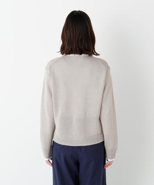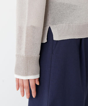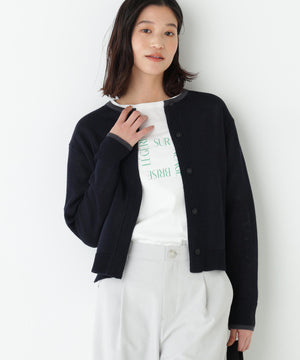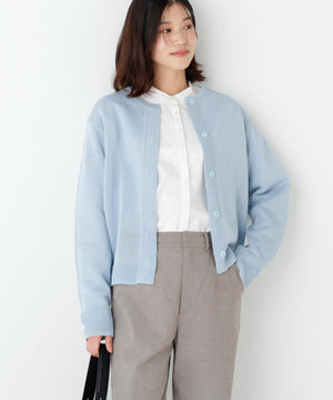 前立ての編地がきちんと感を演出しています。ベーシックなシルエットなので オンオフどちらでも着ていただけます。