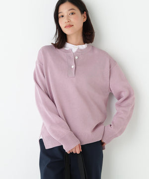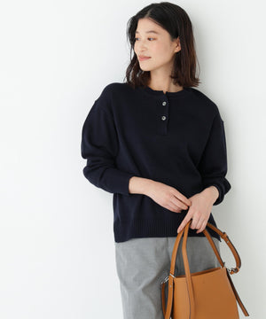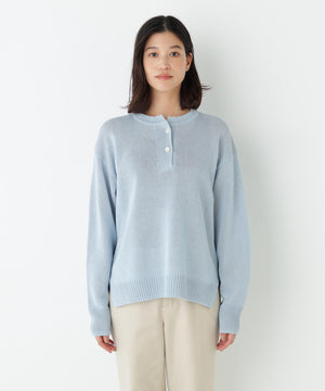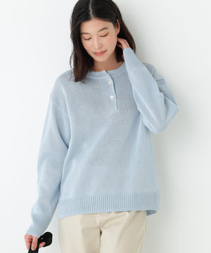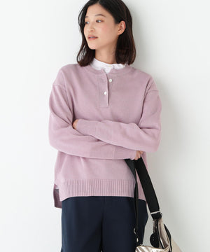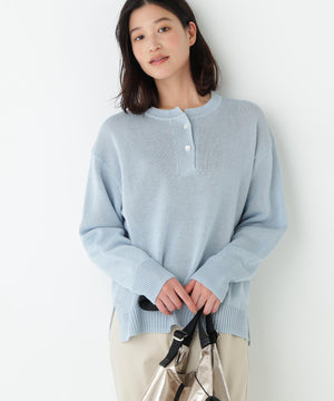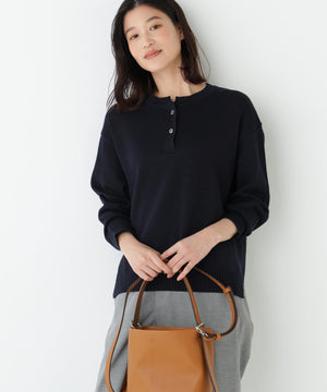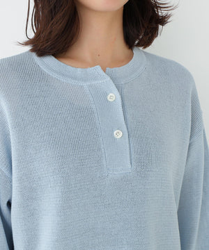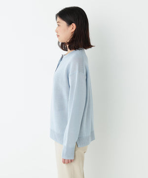 スキッパータイプの襟ぐりが特徴のゆったりサイズのプルオーバー。少し長め丈でリラックス感のあるデザインです。