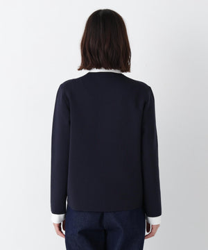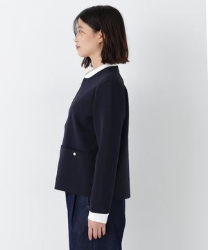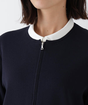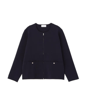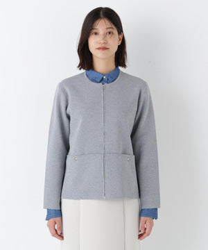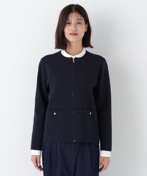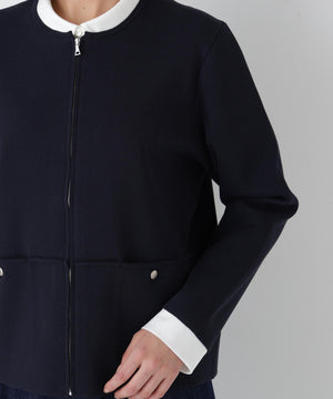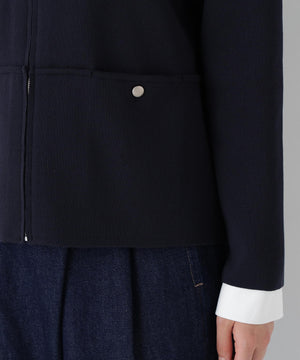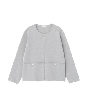 スムースで編立てたジップアップニットジャケットです。クルーネックでベーシックなシルエットで汎用性の高いアイテムです。オンオフどちらでも活躍します。