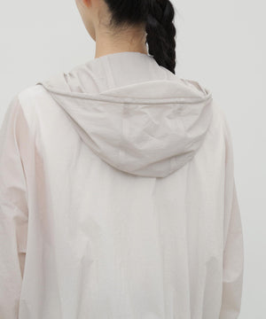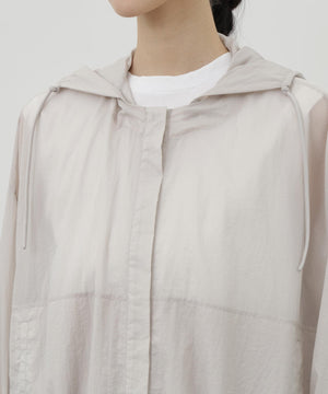 エアリーなリサイクルナイロンを使用。透け感のある軽やかな着心地ながら、初期撥水機能により突然の雨にも安心感をもたらします。