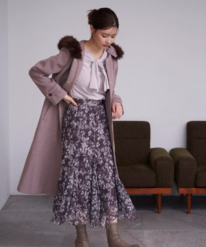 PROPORTIONオリジナルのニュアンス柄で仕上げたフレアスカート。ヒップから裾にかけてキレイなラインを作り、裾はイレギュラーヘムデザインで動くたびに華やかな印象を叶えてくれます。秋のムードを感じさせるベージュとチャコールグレーの2色を揃えました。