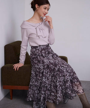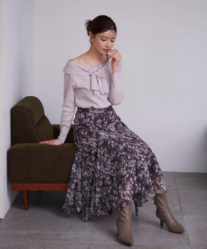 ニュアンス柄ヘムフレアスカート