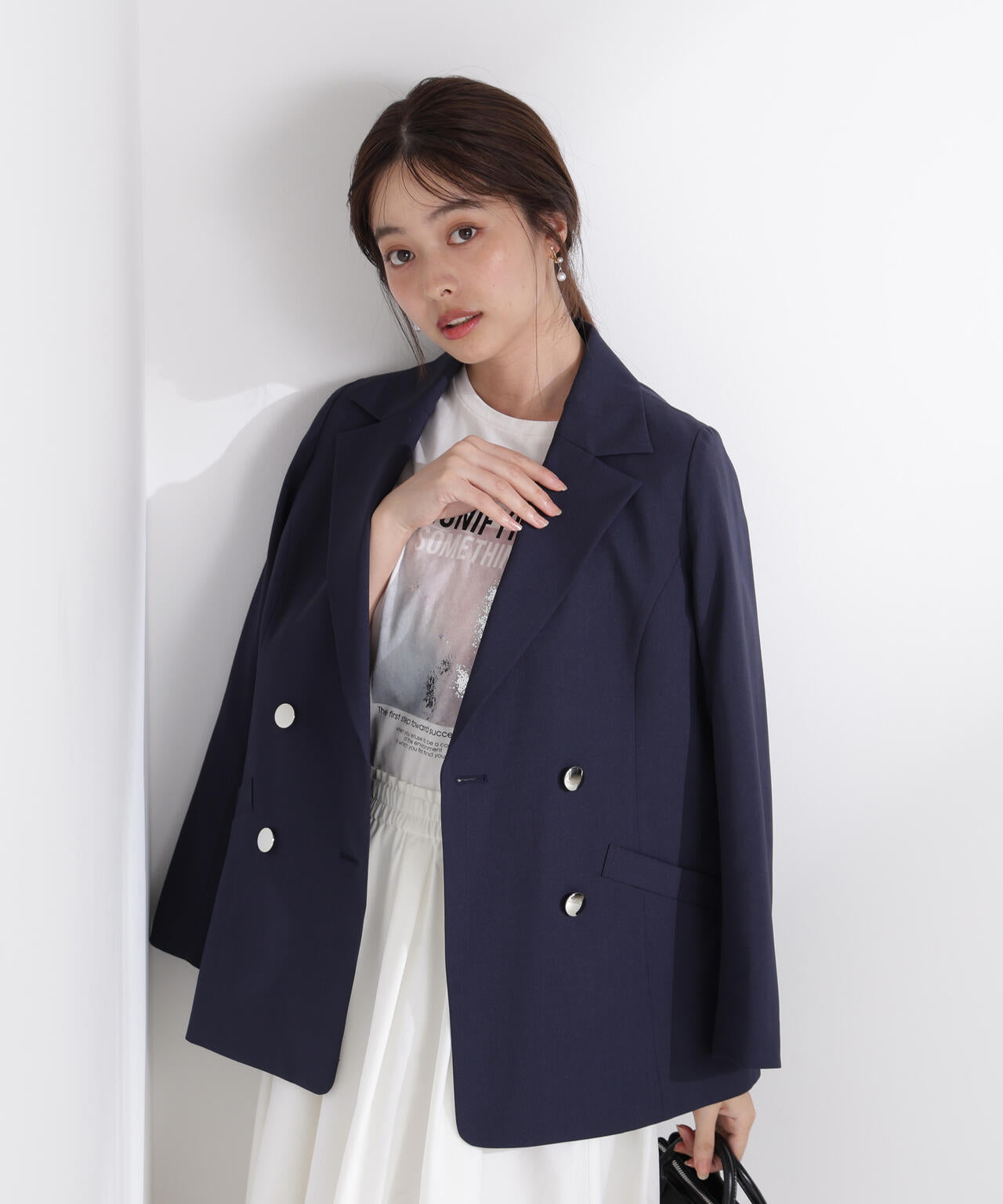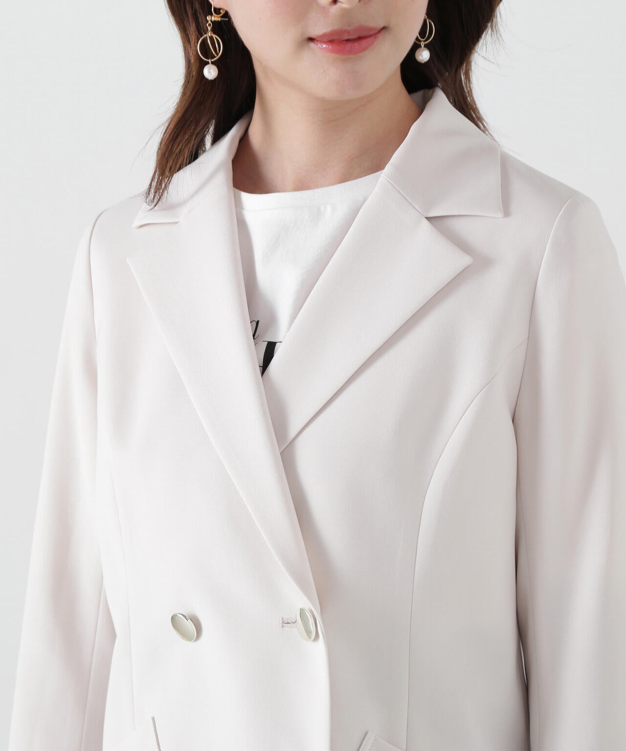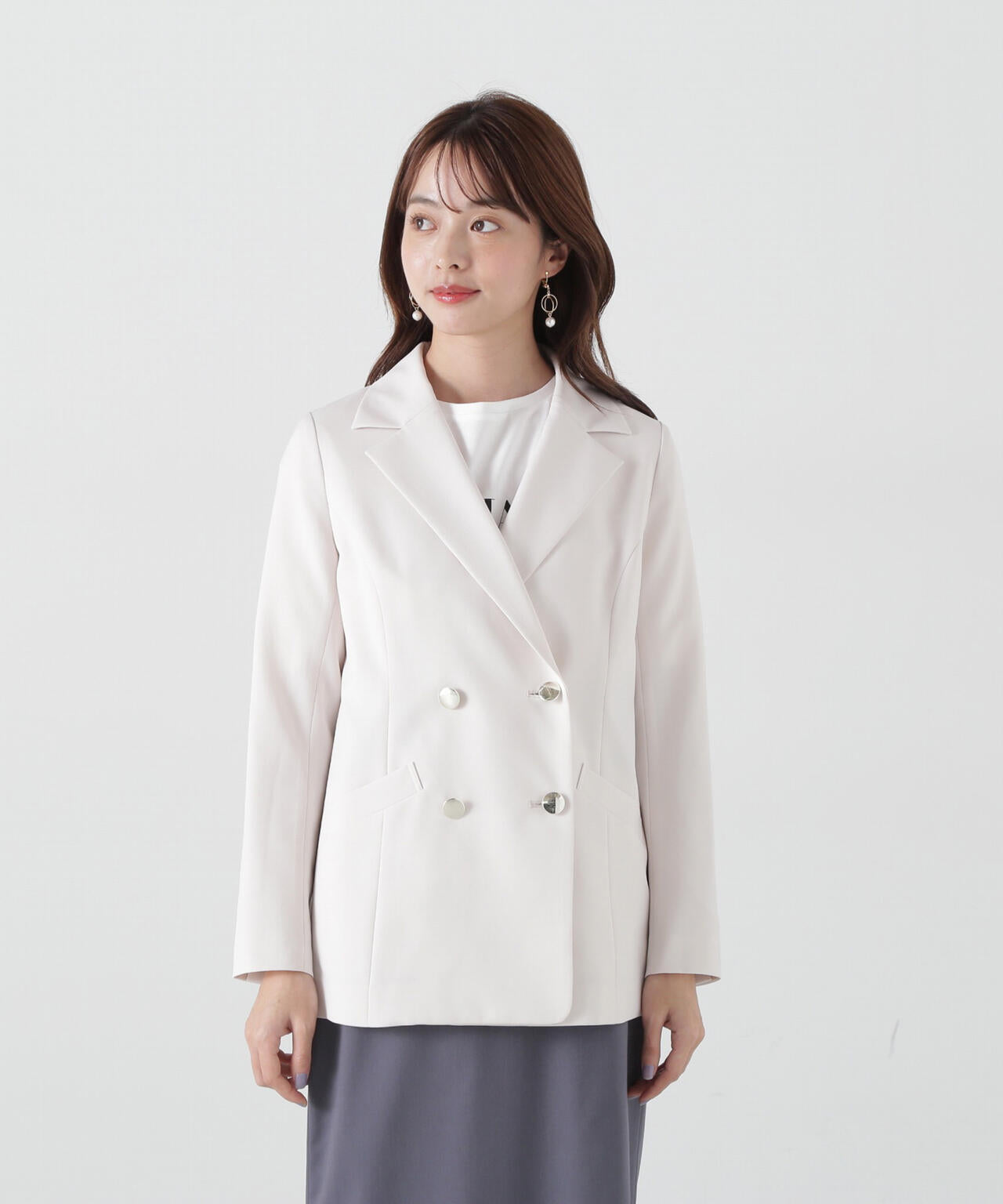 PROPORTION定番のベーシックなテーラードジャケットです。女性らしいシルエットでさらりと羽織っていただけるデザイン。きちんと見えするダブルブレストは、ONもOFFシーンにもおすすめ。クローゼットに一着あると便利なアイテムです。