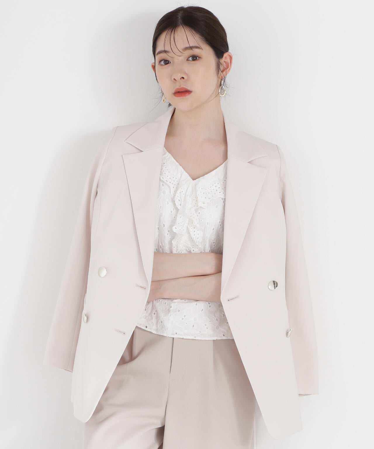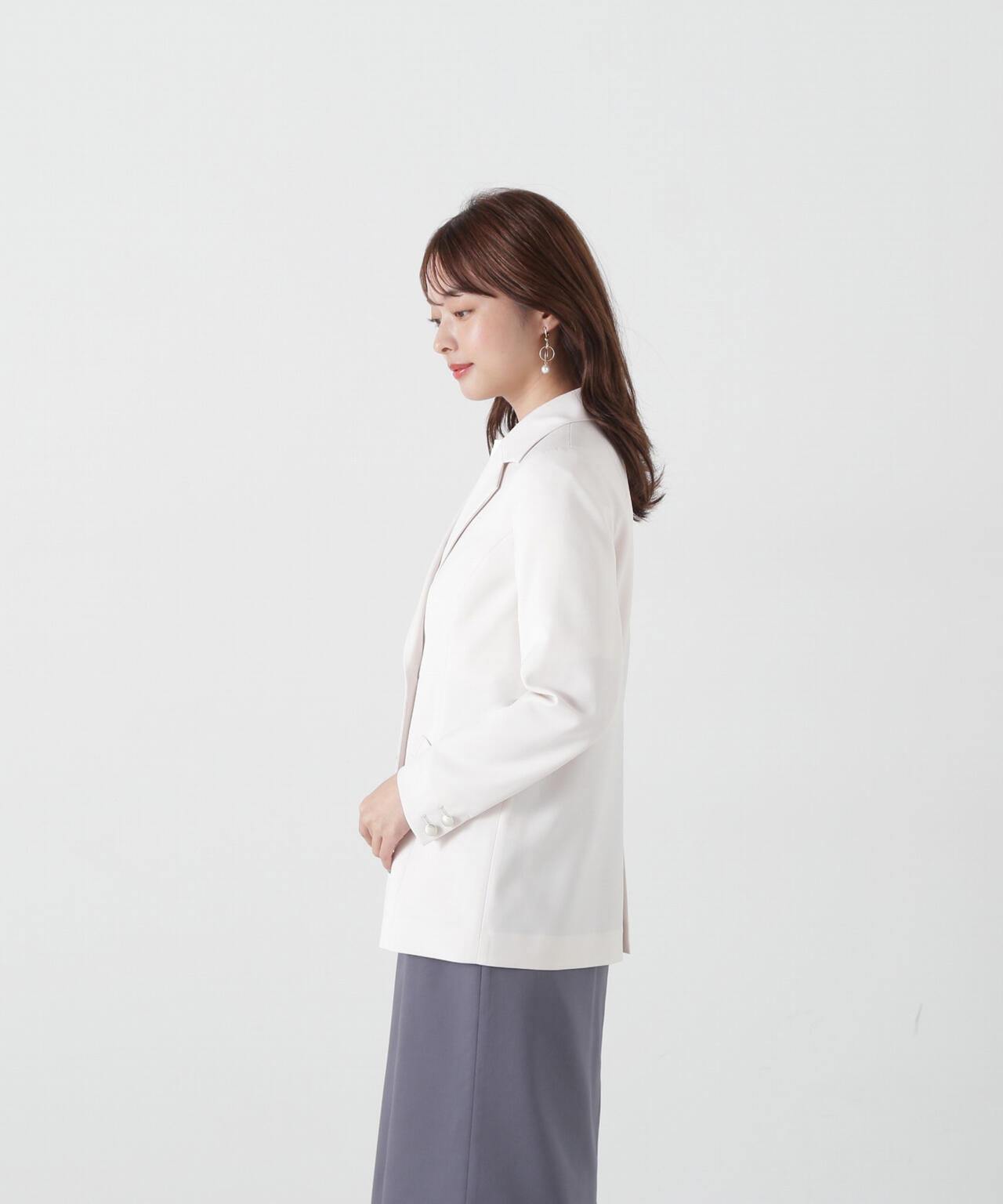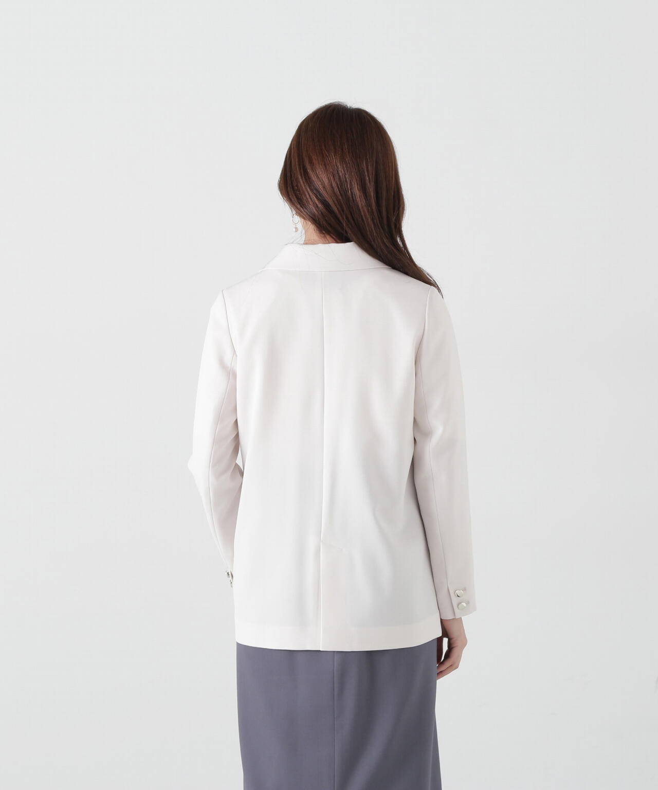 PROPORTION定番のベーシックなテーラードジャケットです。女性らしいシルエットでさらりと羽織っていただけるデザイン。きちんと見えするダブルブレストは、ONもOFFシーンにもおすすめ。クローゼットに一着あると便利なアイテムです。