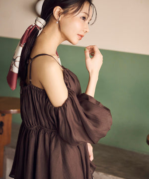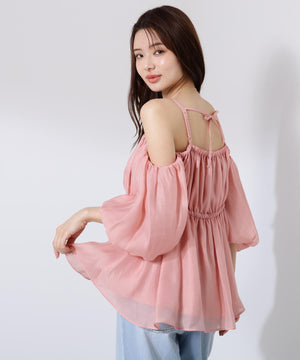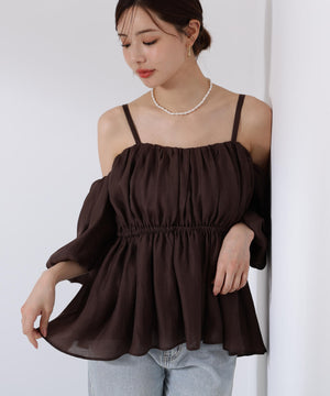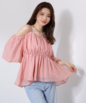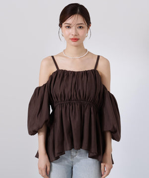 シャーリングオフショルブラウス