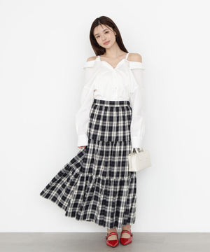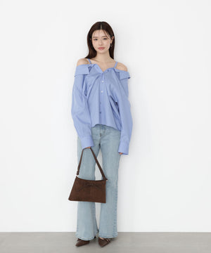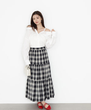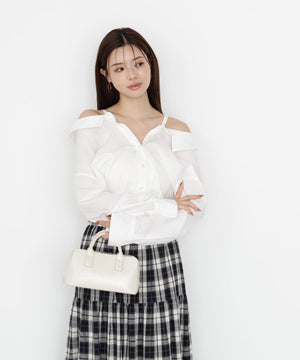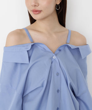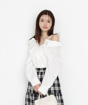 オフショルとしても着られる2wayデザインのブラウスです。ストラップ付きなのでオフショルでも着やすくなっています。後ろが少しコクーンになるシルエットで、カジュアルさをプラス。ボトムスに合わせて、前裾のみタックインも、インもアウトも楽しめます。