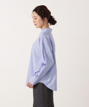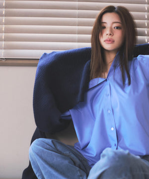 一枚あると便利なベーシックシャツです。大きすぎないシルエットなので、一枚着はもちろん、羽織りとしても、上からニットを重ねたレイヤードスタイルも楽しめます。