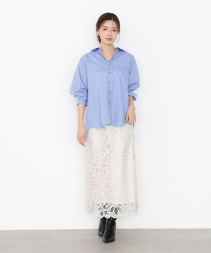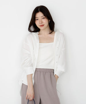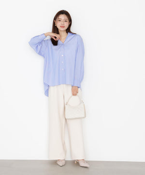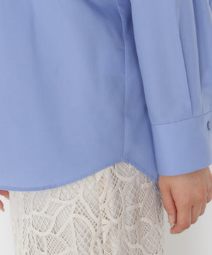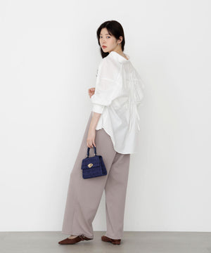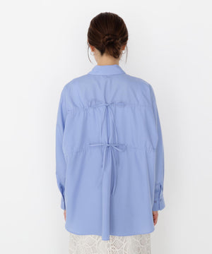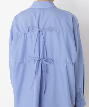 バックスタイルのダブルリボンディテールが愛らしいシャツ。リボンを絞るように結ぶとサイズ調節できます。裾サイドはラウンドラインで軽い抜け感をプラス。1枚着としても、羽織りとしても活躍できる便利なデザインです。
