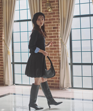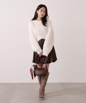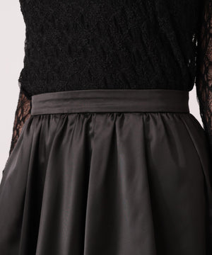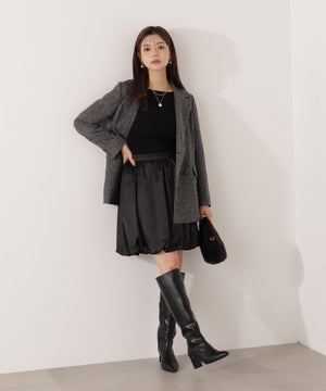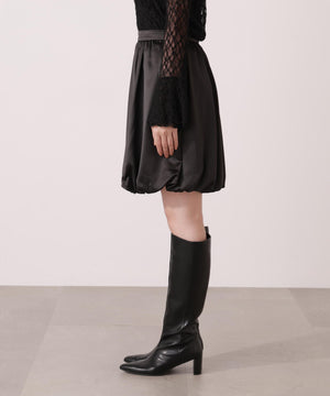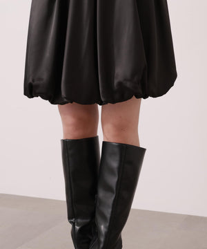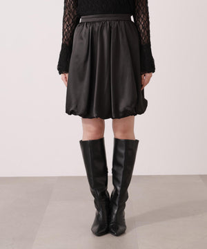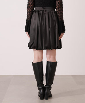 ふんわり構築したバルーンシルエットのミニスカートです。短すぎないミニ丈がポイント。ハリ感と落ち感のあるマットサテン素材を使用しているので、落ち着いた雰囲気で着用いただけます。