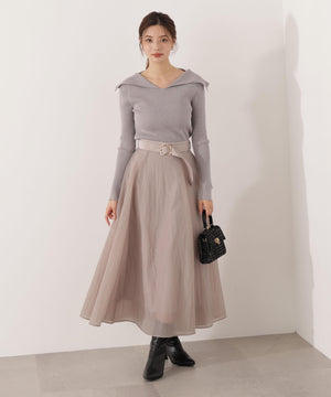 【青島心さん着用】ベルト付きシアーフレアスカート