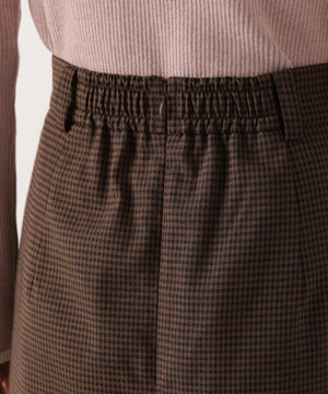 トレンドのギンガム柄を細かくして着やすく仕上げたナロータイトスカート。ナローラインのシルエットが、洗練された大人な印象を叶えます。後ろはセンタースリット入り。後ろウエストはゴム仕様でフィットします。細かいギンガム柄なのでコーディネートしやすいアイテムです。