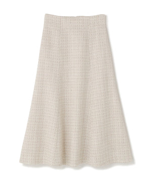 ラメ糸がさり気なく入っているミックスツイード素材を使用したフレアスカート。オリジナルのミックスツイード素材を使用、定番ブラックと女性らしいライトベージュの2色展開です。キレイなフレアシルエットがポイント。ウエストからヒップにかけてすっきりとしたラインにしつつ裾幅があるので、動くたびに出るキレイな揺れ感が女性らしさを引き立てます。