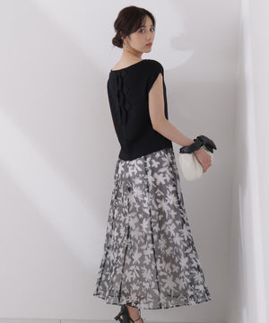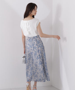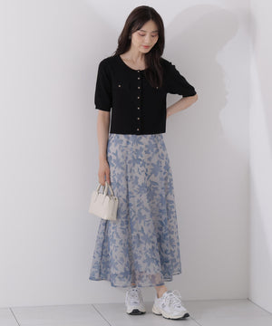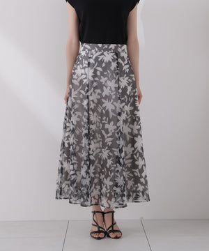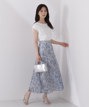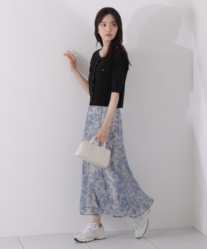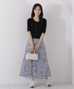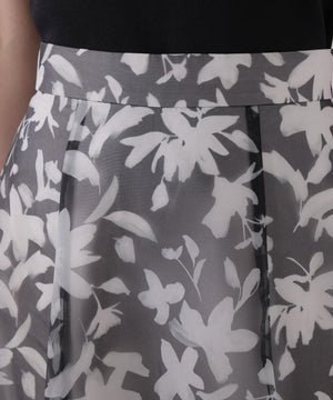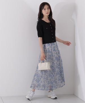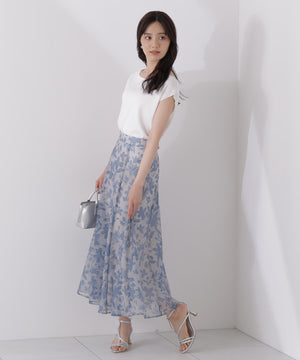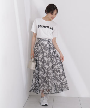 シアー素材にPROPORTIONオリジナルのペイントフラワーをプリントしたスカートです。落ち着いたカラーのペイントフラワーなので甘くなりすぎない印象。後ろウエストはゴム仕様なのでフィットしながらラクなはき心地です。キレイめトップスと合わせるのはもちろん、Tシャツと合わせればカジュアルダウンも楽しめます。