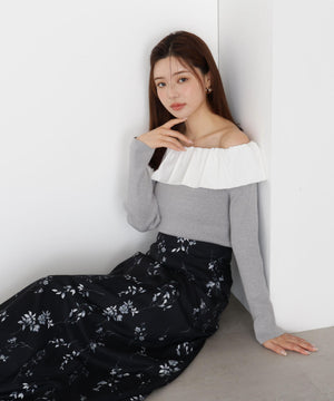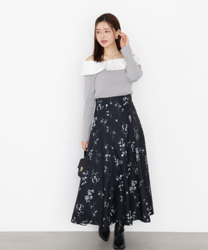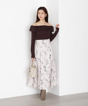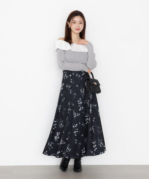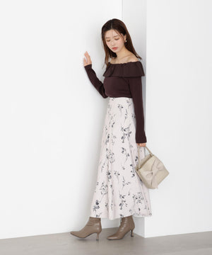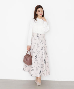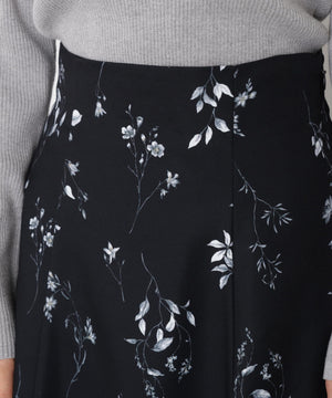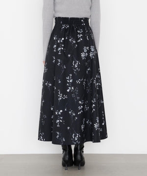 オリジナル柄を使用したフレアスカートです。しっかりとした素材に繊細な花柄をプリントし、大人フェミニンな雰囲気を引き立てます。後ろウエストはゴム仕様でフィット。今から長く着ていただけるベージュと黒のベーシックなカラーを揃えています。