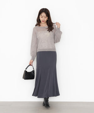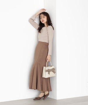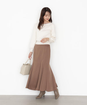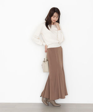 アシンメトリーなマーメイド切り替えを入れた大人っぽいスカート。裾まわりにボリュームがあり、動くたびに揺れる華やかなマーメイドシルエットです。ウエストラインがすっきりしているので、トップスの裾をアウトもインもしやすい1枚です。