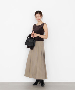 トレンドのクラシカルなプリーツスカートです。腰下から広がるデザインでバランスが取りやすく、様々な体型にフィットしやすいデザインです。ウエストベルトの切り替えで、トップスインがキレイに決まります。無地ベージュとブラウンチェック柄の秋らしい2色展開です。