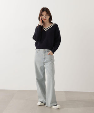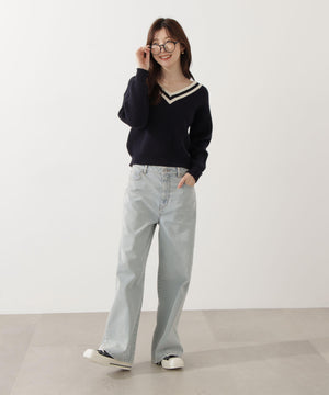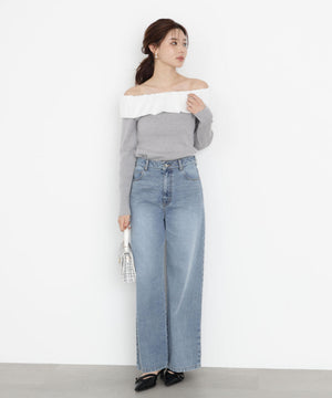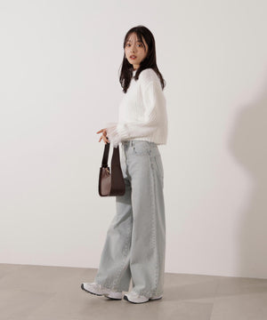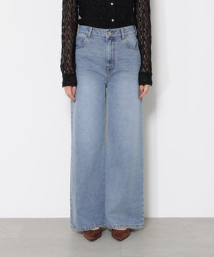 お尻まわりがすっきりとしたワイドデニムパンツです。ハイウエストなので脚長効果を期待できます。コンパクトなトップスと合わせたり、シャツやチュニック丈とも着回せるデザイン。カジュアルコーディネートの定番アイテムとして活躍できます。