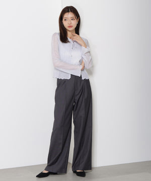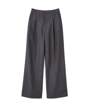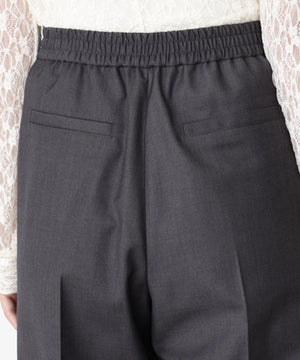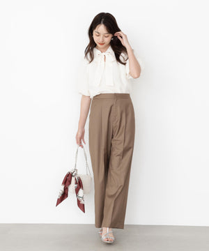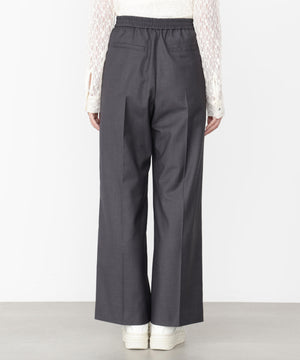 太すぎないストレートワイドシルエットのパンツです。後ろウエストはゴム仕様でラクなはき心地ながら、センタープレス入りできちんと感を演出。ベーシックなデザインなのでONにもOFFスタイルにも着回せます。