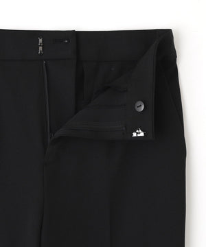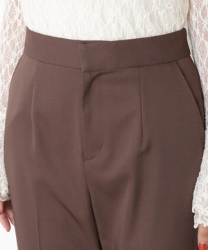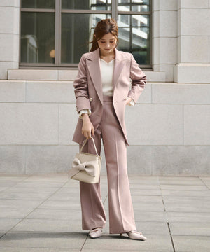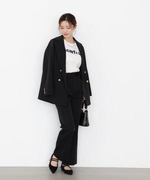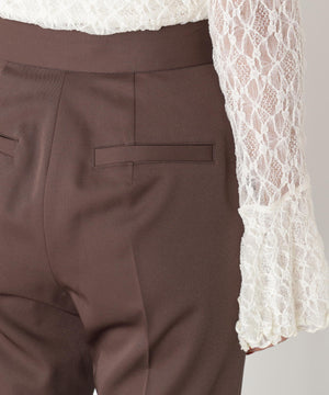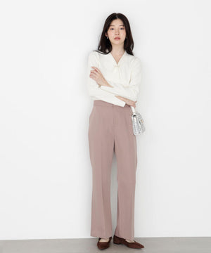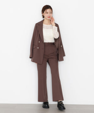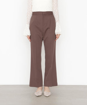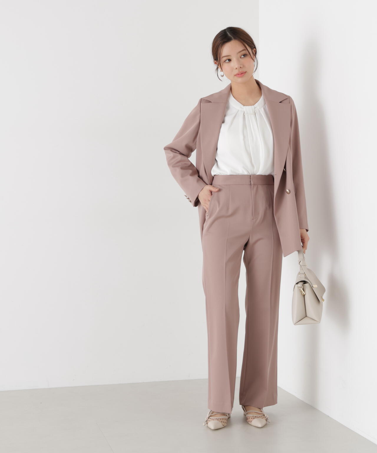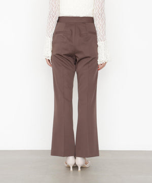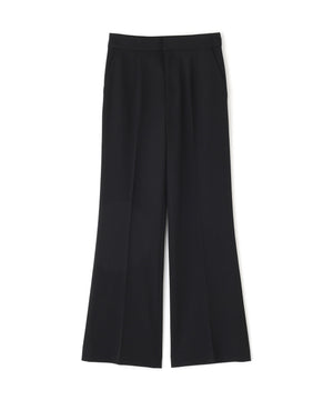 オリジナルパターンで、ウエストと膝の位置を高めに設定して、体のラインを拾いすぎないシルエットに拘った、美ラインフレアパンツです。センタープレス入りで脚長効果も期待。足元はパンプスもスニーカーも合わせやすいです。デイリー使い、オフィス、お出かけなど、幅広いシーンで活躍。同素材のジャケットとのSETUPスタイルもおすすめです。