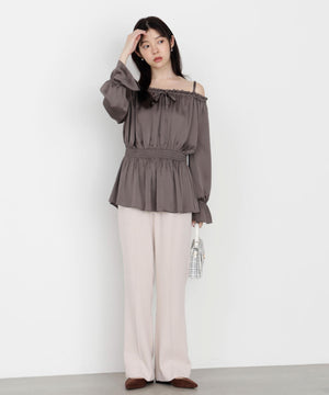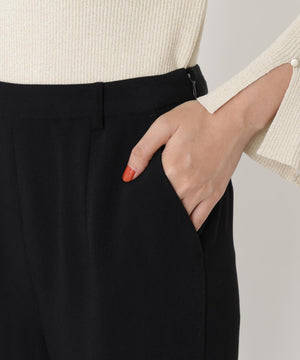 落ち感のある素材とベーシックカラーが大人っぽく着られるパンツ。お尻のラインがキレイに見えるよう拘ったデザインです。センタープレス入りで脚のラインをすっきり演出。ゆるっとした抜け感のあるシャツ、フェミニンなトップスとも着ていただけます。