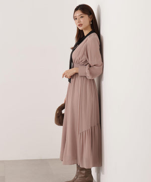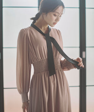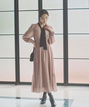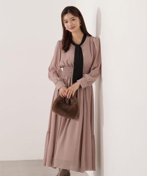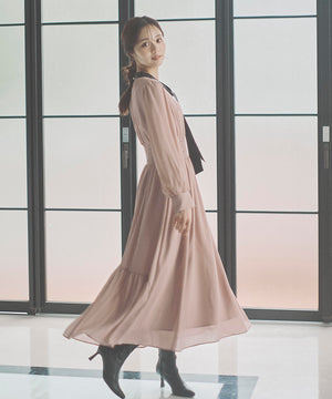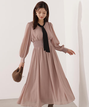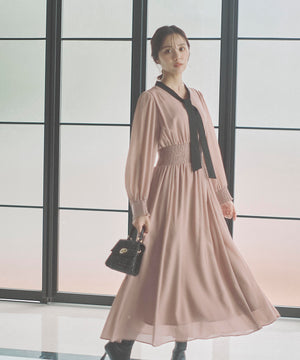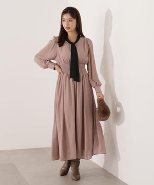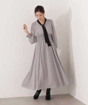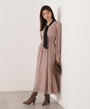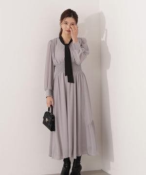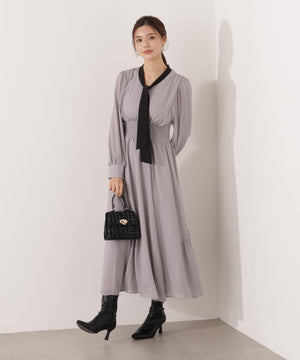 【青島心さん着用】タイ付きウエストシャーリングワンピース
