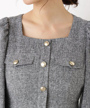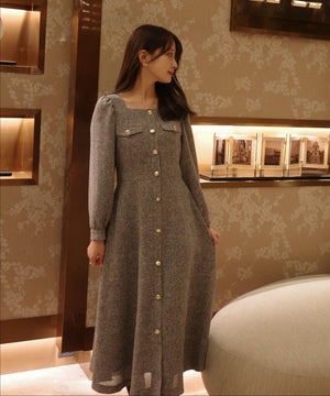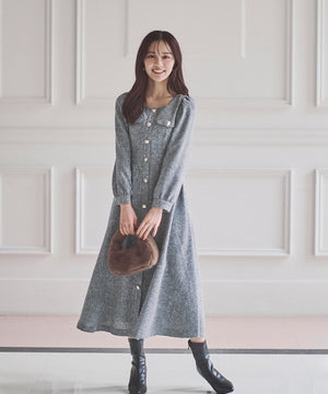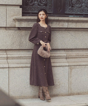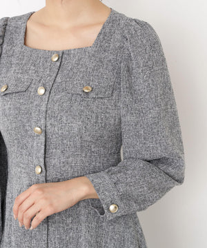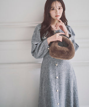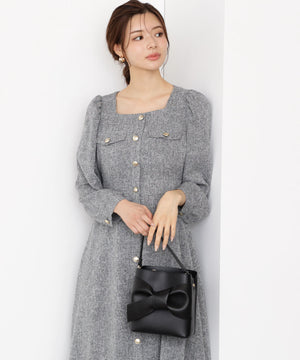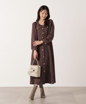 【青島心さん着用】フロント釦ツイードワンピース