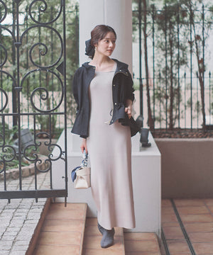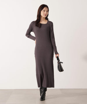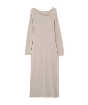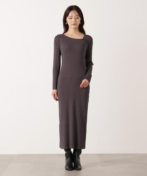 アシンメトリーなネックラインが特徴のリブニットワンピースです。マーメイドシルエットで女性らしいラインを描き、華やかな印象を叶えます。ジャケットを羽織り、足元はブーツを履いて全体を大人っぽく引き締めるのもお勧めです。