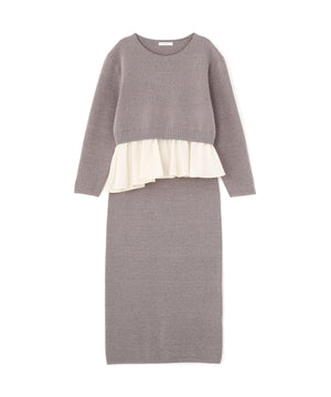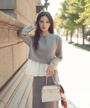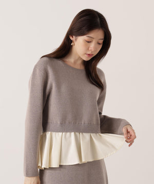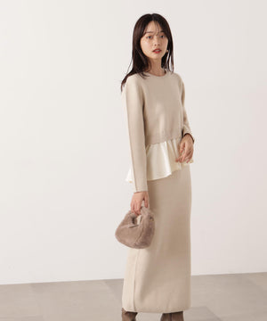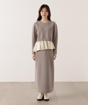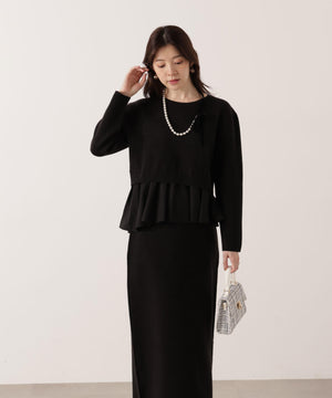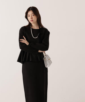 【青島心さん着用】<ウォッシャブル>ランダムヘムペプラムニットSETUP