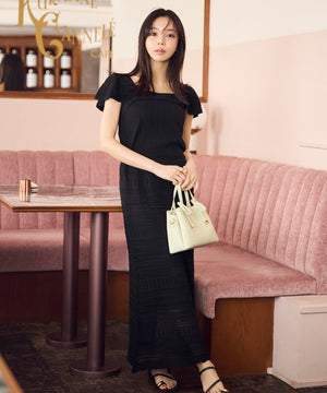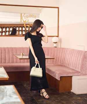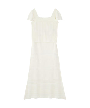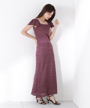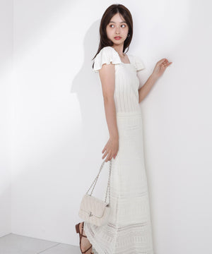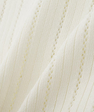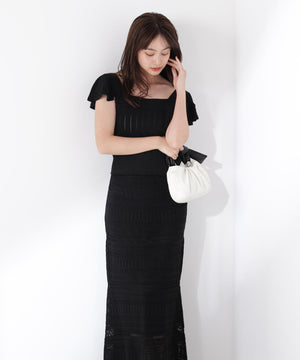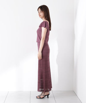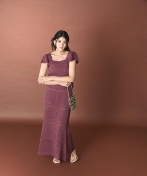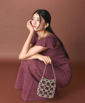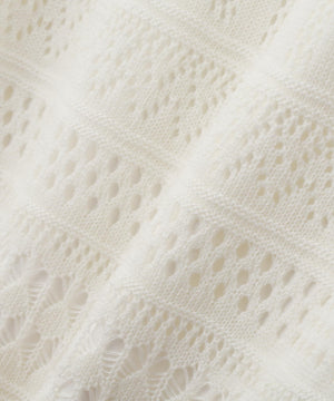 複数の透かし編みを組み合わせたセットアップです。今の気分にぴったりなボヘミアンなムードを適度に取り入れたデザイン。それぞれ単品使いもできるので、コーディネートの幅が広がります。