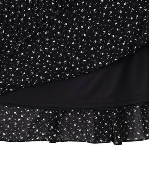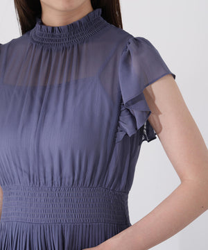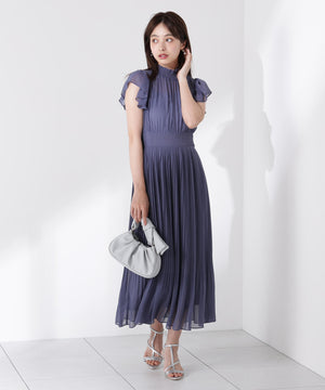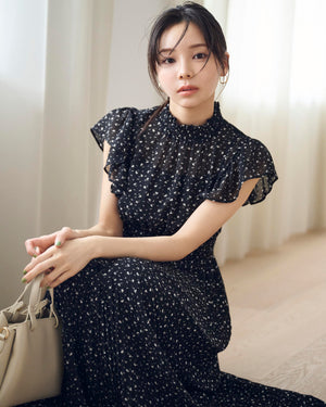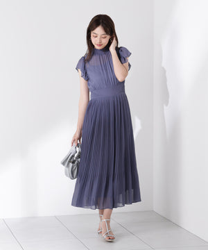 繊細なプリーツデザインがオトナ可愛い、楊柳シフォンワンピースです。肩先をそっと覆う袖丈が夏らしく涼しげな印象。襟とウエストはシャーリングゴム仕様で、メリハリの効いた女性らしいデザインです。無地のブルーはエレガントな雰囲気で、小花柄の黒は甘すぎない大人のフェミニンさを叶えます。