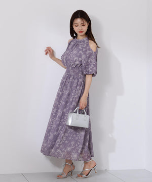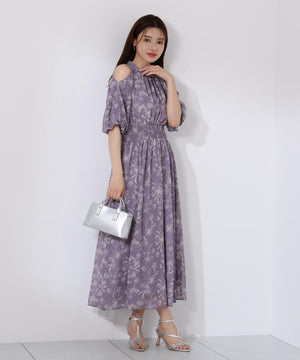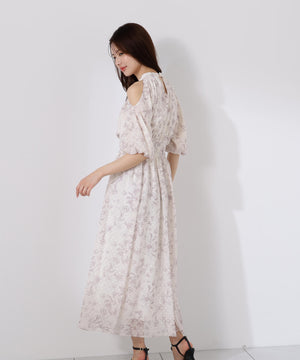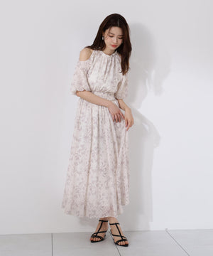 オープンショルダー花柄ワンピース