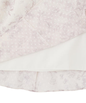 トレンドのオープンショルダーデザインの花柄ワンピースです。肌見えするオープンショルダーとボリューミーなバルーン袖が相まって、シルエットにメリハリを効かせながらキレイに演出。ウエストはゴム仕様なので動きやすくなっています。柔らかいカラーの中花柄×ドットがフェミニンで華やぎアップする一枚。