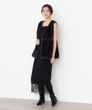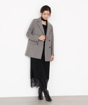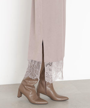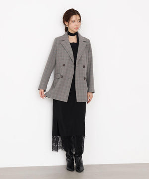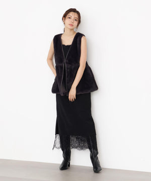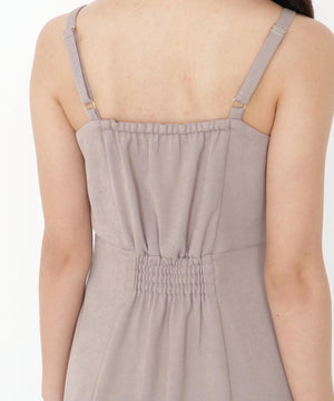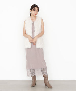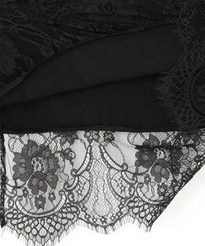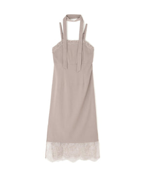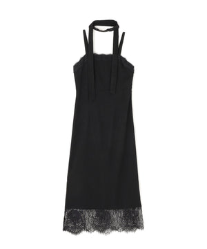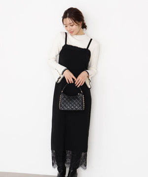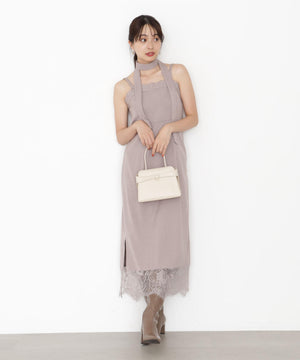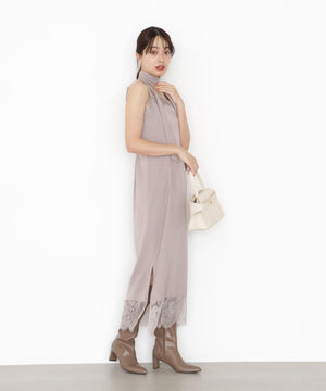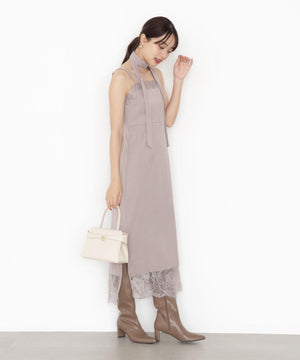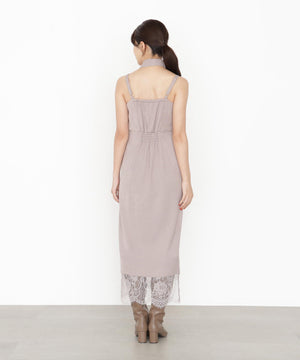 トレンドの裾レース切り替えを取り入れたキャミワンピースです。縦ラインを演出しながら、サイドスリットで程よい抜け感と肌見えを両立し、上品な印象に見せてくれます。秋のワンピースらしくボウタイを付けており、首元に巻くとアクセントに。ジャケットやジレを羽織ったり、インナーを合わせてレイヤードするのもお勧めです。