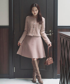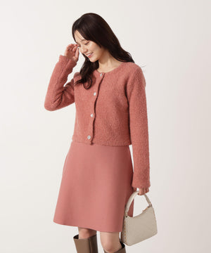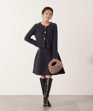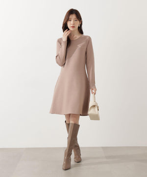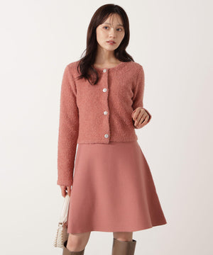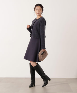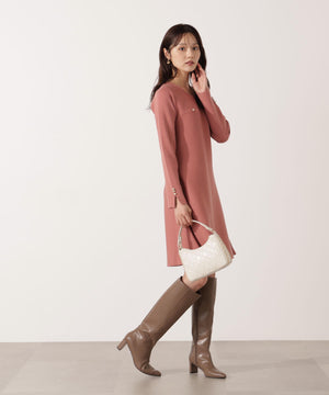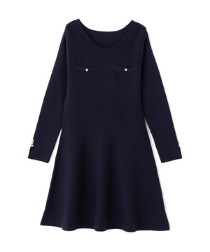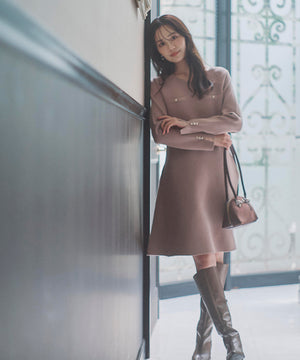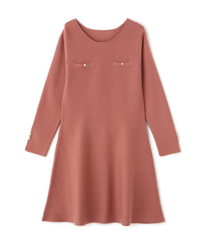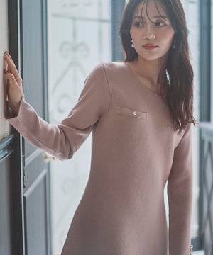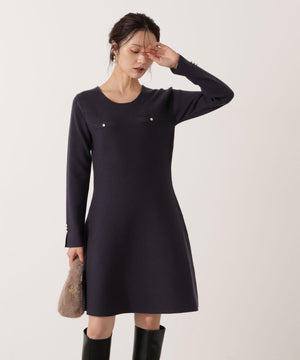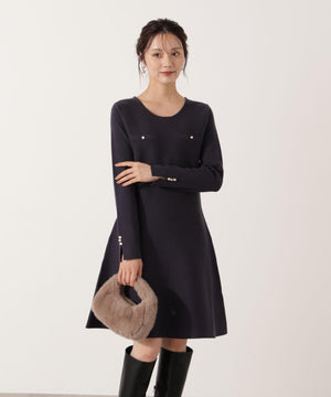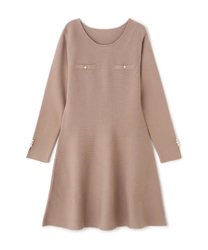 シンプルなフィット&フレアシルエットで、美スタイルを叶えるニットワンピースです。袖口スリットがさり気ないポイント。1枚着はもちろん、ブークレカーディガン(店舗商品番号121-5277003)と色を揃えたコーディネートもお勧めです。