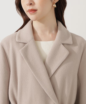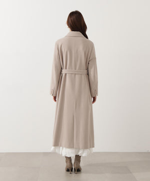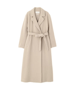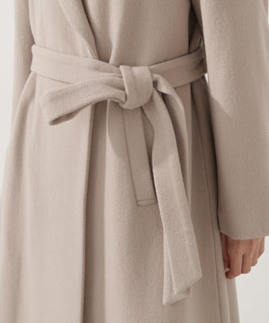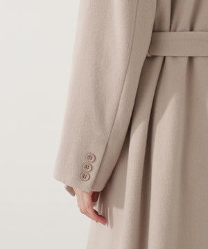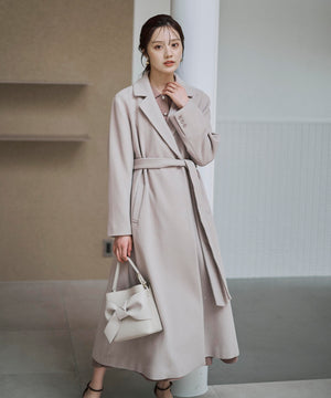 小さめの襟や細めのベルトを合わせた、大人レディなベルテッドコート。オリジナルパターンでシルエットに拘り、裾に向かって少し広がるラインがキレイなデザインです。長めの着丈なのでパンツはもちろん、スカートやワンピース合わせもお勧めです。ライトモッサ特有の暖かくて軽い生地を使用しているので、軽く羽織るだけでドラマチックなコーディネートが叶います。