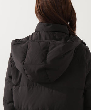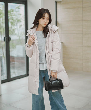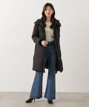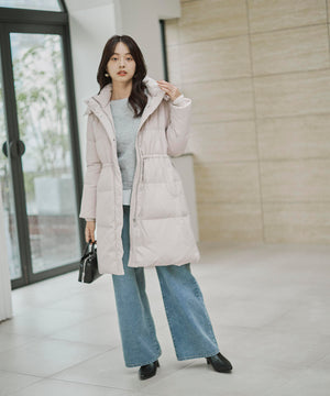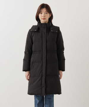 シンプルカジュアルでありながら、女性らしさに拘ったフード付きダウンコート。フードを取り外すと、スタンドネックとしても気分に合わせて違うスタイルが楽しめます。長めの着丈は見た目も暖かで、防寒対策もぴったり。ウエスト内側のドローコードでフィット感の調節が出来ます。