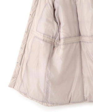 フランス製のダウンを使用。空気を多く含み保温性に優れています。表生地は撥水加工されています。ダウンの膨らみを感じられる様に、表生地は高密度ですが、ソフトで軽量感のあるタフタ素材を使用しています。