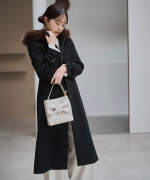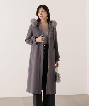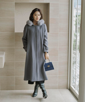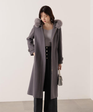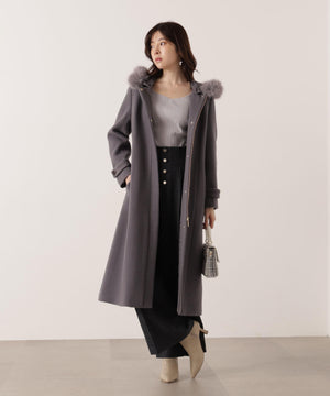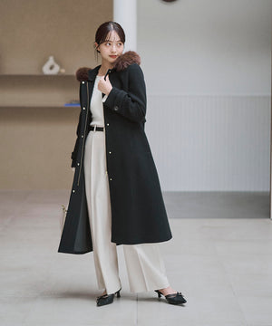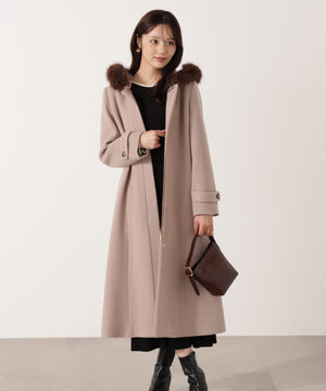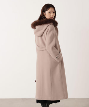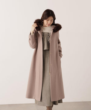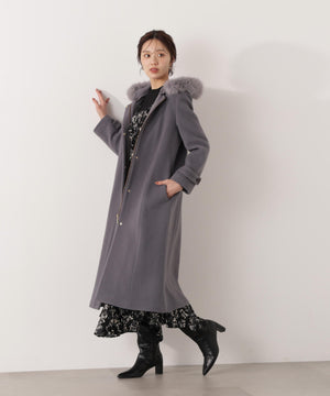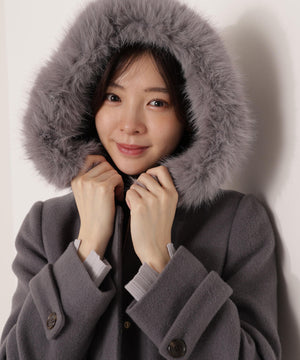 【加藤栞さん着用】モッサフードフェイクファーロングコート
