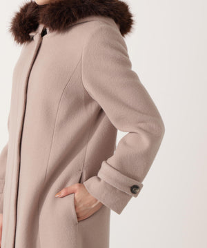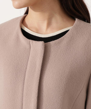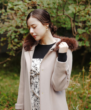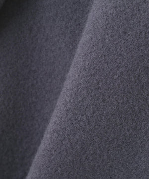 生地の表面に毛羽立ちをもたせたモッサ加工を施しています。メルトン素材に比べて軽く、ふっくらとした柔らかな風合いが特徴。日本製の生地を使用しています。フードまわりはフェイクファーを使用。