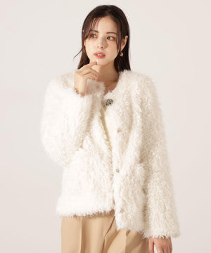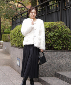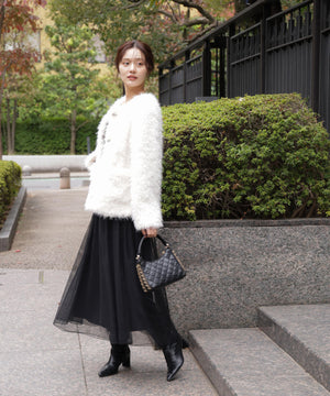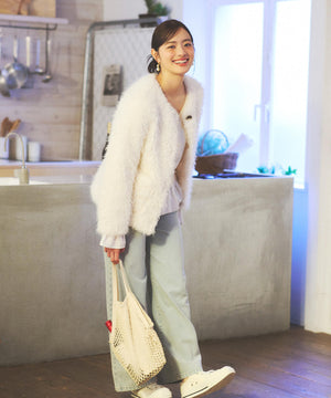 毛足の長いフェイクファーを使用したブルゾン。大きすぎないシルエットと少し長めの着丈はインナーを選ばず、幅広いスタイリングに活躍します。大きめのニュアンスボタンがポイント。コーディネートに取り入れるだけで着こなしの鮮度アップを狙えます。