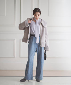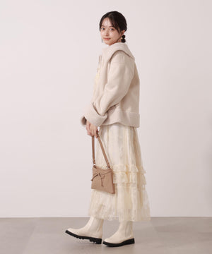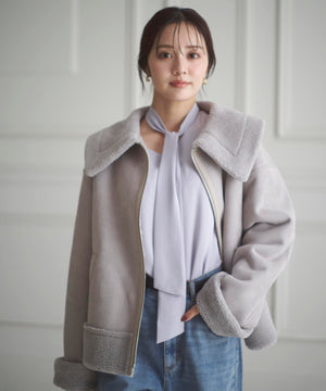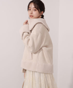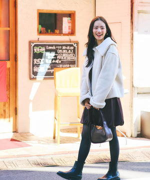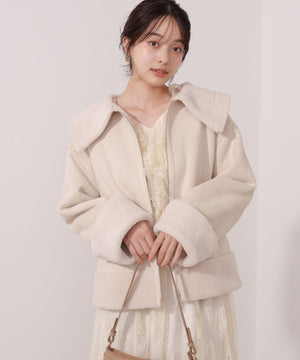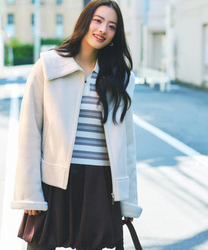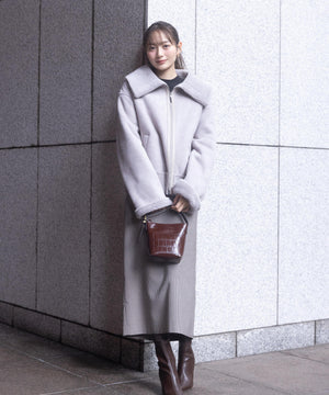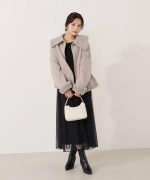 昨年ご好評いただいたフェイクムートンコートを一部アップデートして登場!大きな襟がポイントのアウターです。今年は袖にボアをつけて暖かみをプラス。Aラインのミドル丈シルエットが、大人フェミニンなコーディネートを叶えます。